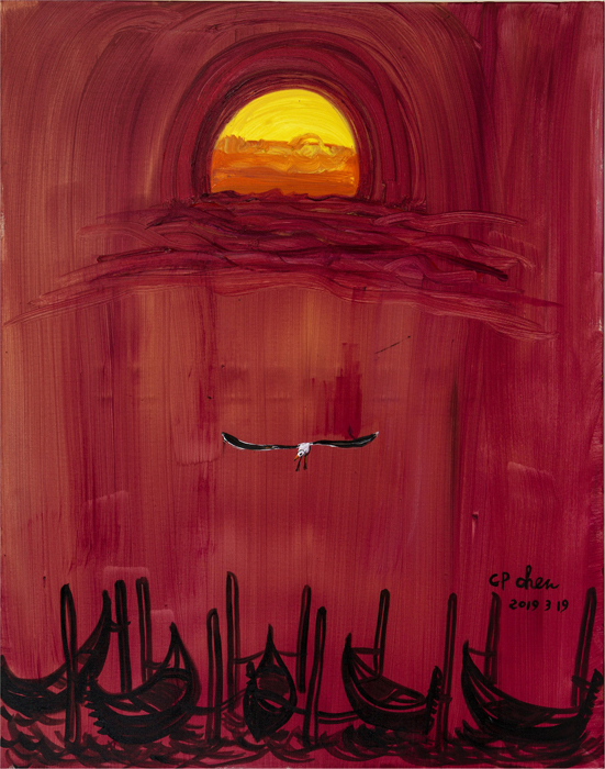 名称:《临江仙滚滚长江东逝水》 画布 丙烯颜料 2019年 尺寸:91cmX72.5cm 价格:议价