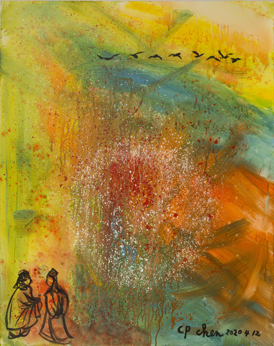 名称:《临江仙滚滚长江东逝水》 画布 丙烯颜料 2020年 尺寸: 100cmX80cm 价格:议价